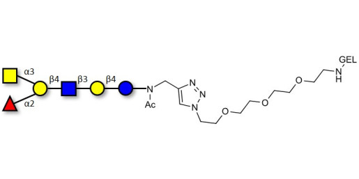 Glycan structure: GalNAcα1-3(Fucα1-2)Galβ1-4GlcNAcβ1-3Galβ1-4Glc-NAc-CH2-(1.4-Tz)-(CH2)2-EG3-NH-Gel