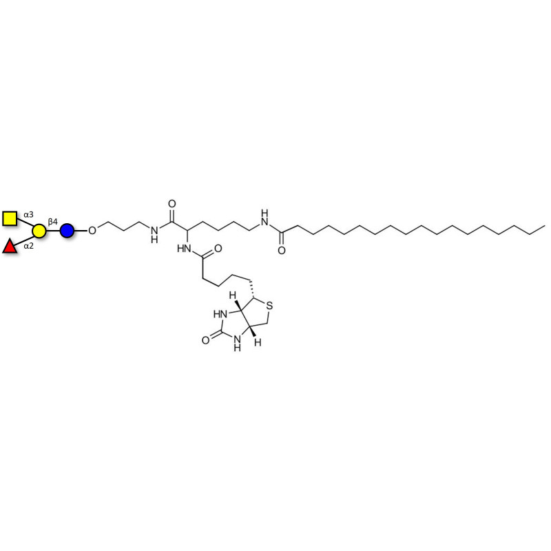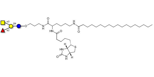 Glycan structure: GalNAcα1-3(Fucα1-2)Galβ1-4Glc-O-(CH2)3-NHCO-CH(NHCO-Biotin)-(CH2)4-NHCO-(CH2)16-CH3