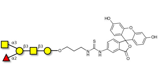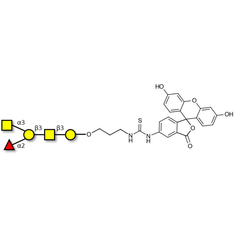 Glycan structure: GalNAcα1-3(Fucα1-2)Galβ1-3GalNAcβ1-3Gal-O-(CH2)3-NH-CS-NH-Fluorescein