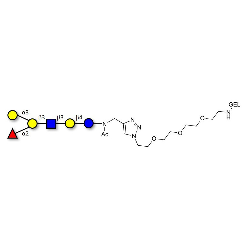 Glycan structure: Galα1-3(Fucα1-2)Galβ1-3GlcNAcβ1-3Galβ1-4Glc-NAc-CH2-(1.4-Tz)-(CH2)2-EG3-NH-Gel