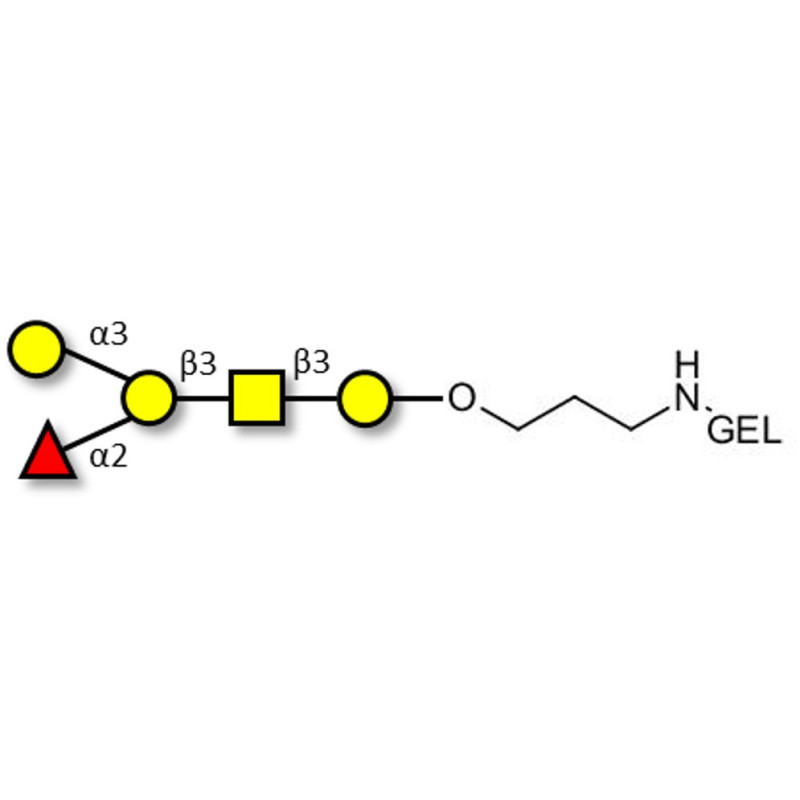 Glycan structure: Galα1-3(Fucα1-2)Galβ1-3GalNAcβ1-3Gal-O-(CH2)3-NH-Gel