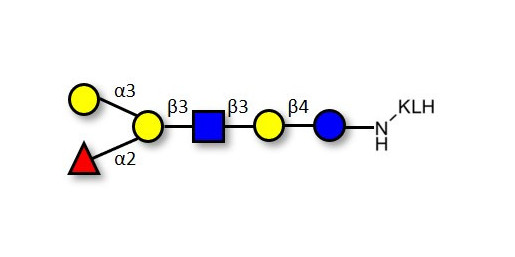 Glycan structure: Galα1-3(Fucα1-2)Galβ1-3GlcNAcβ1-3Galβ1-4Glc-KLH