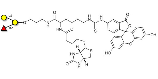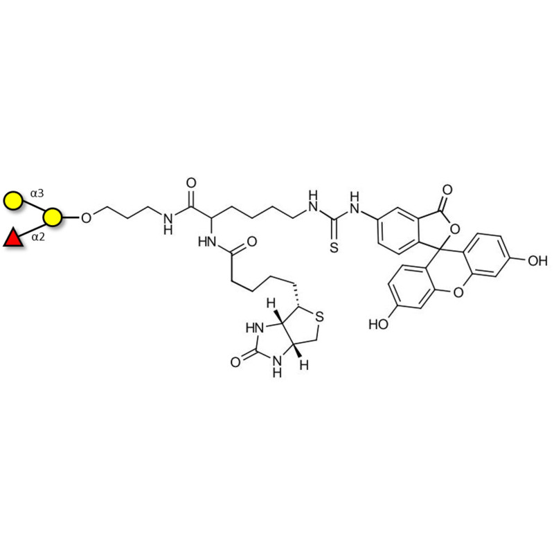 Glycan structure: Gal1-3(Fucα1-2)Gal-O-(CH2)3-NHCO-CH(NHCO-Biotin)-(CH2)4-NH-CS-NH-FITC