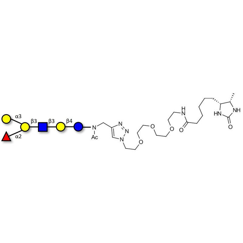Glycan structure: Galα1-3(Fucα1-2)Galβ1-3GlcNAcβ1-3Galβ1-4Glc-NAc-CH2-(1.4-Tz)-(CH2)2-EG3-NH-Desthiobiotin