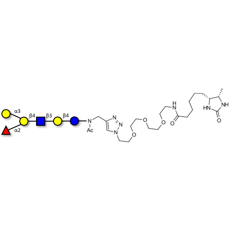 Glycan structure: Galα1-3(Fucα1-2)Galβ1-4GlcNAcβ1-3Galβ1-4Glc-NAc-CH2-(1.4-Tz)-(CH2)2-EG3-NH-Desthiobiotin
