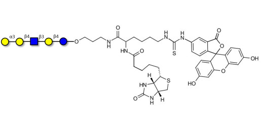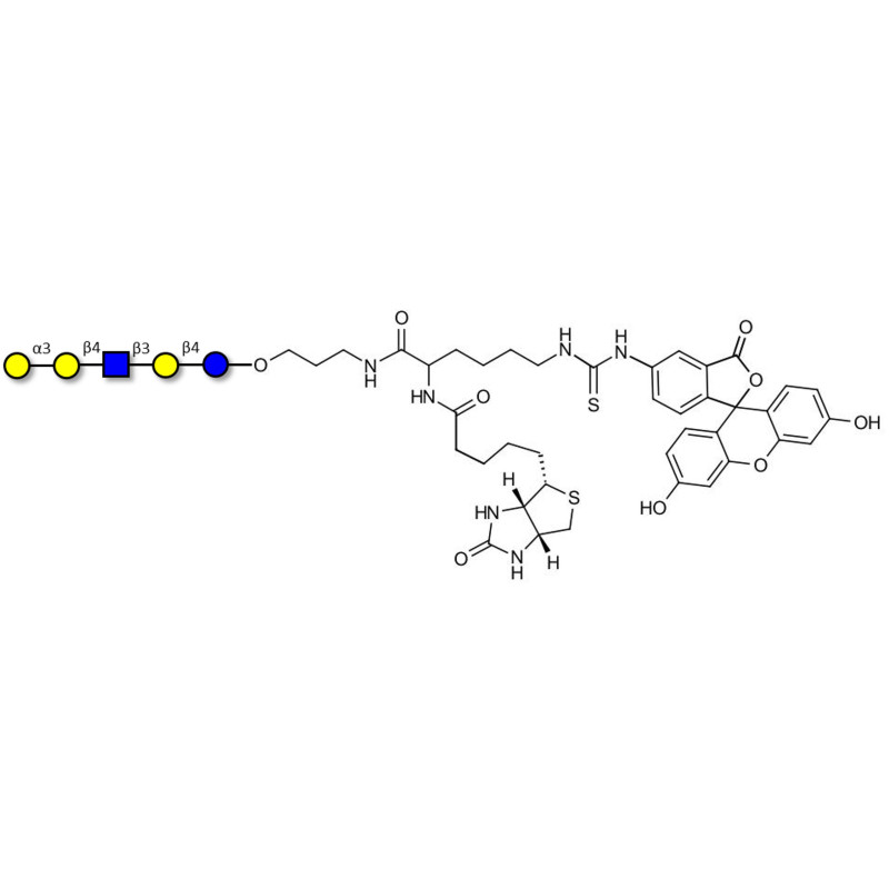 Glycan structure: Galα1-3Galβ1-4GlcNAcβ1-3Galβ1-4Glc-O-(CH2)3-NHCO-CH(NHCO-Biotin)-(CH2)4-NH-CS-NH-FITC