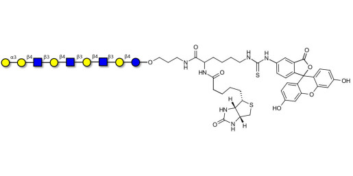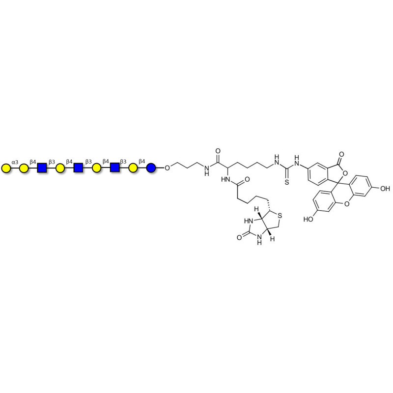 Glycan structure: Galα1-3(Galβ1-4GlcNAcβ1-3)3Galβ1-4Glc-O-(CH2)3-NHCO-CH(NHCO-Biotin)-(CH2)4-NH-CS-NH-FITC