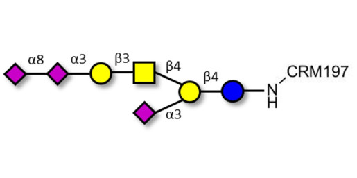 Glycan structure: Neu5Acα2-8Neu5Acα2-3Galβ1-3GalNAcβ1-4(Neu5Acα2-3)Galβ1-4Glc-CRM197