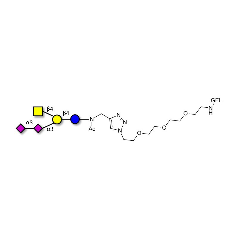 Glycan structure: GalNAcβ1-4(Neu5Acα2-8Neu5Acα2-3)Galβ1-4Glc-NAc-CH2-(1.4-Tz)-(CH2)2-EG3-NH-Gel