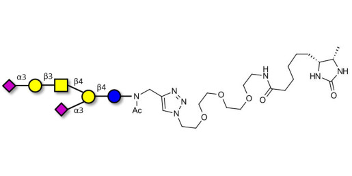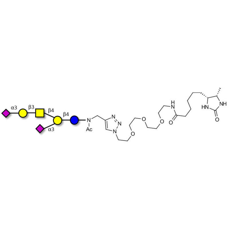 Glycan structure: Neu5Acα2-3Galβ1-3GalNAcβ1-4(Neu5Acα2-3)Galβ1-4Glc-NAc-CH2-(1.4-Tz)-(CH2)2-EG3-NH-Desthiobiotin