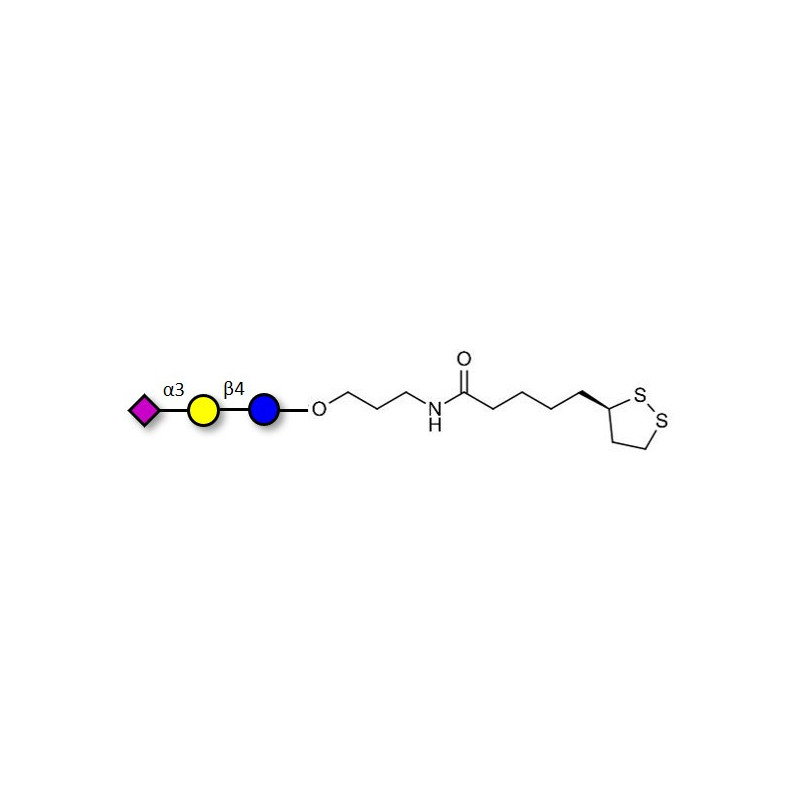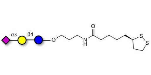 Glycan structure: Neu5Acα2-3Galβ1-4Glc-O-(CH2)3-NH-Lipoic