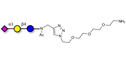 Synonyms:GLY090-NAc-sp1-NH2 ; 3'SL; N-Acetylneuraminoyllactose; (2, 3')-a-Sialyllactose; 3'-a-Sialyllactose; a-Neu5Ac-(2-3)-/3-D. Gal-(1-4)-D-Glc; 3'-N-Acetylneuraminyl-D-lactose