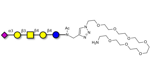 Glycan structure: Neu5Acα2-3Galβ1-3GalNAcβ1-4Galβ1-4Glc-NAc-CH2-(1.4-Tz)-(CH2)2-EG7-NH2