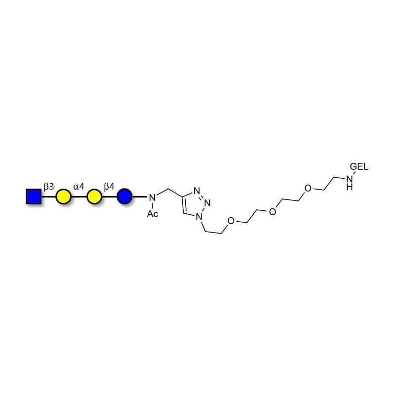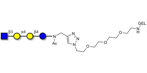 Glycan structure: GlcNAcβ1-3Galα1-4Galβ1-4Glc-NAc-CH2-(1.4-Tz)-(CH2)2-EG3-NH-Gel