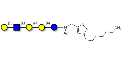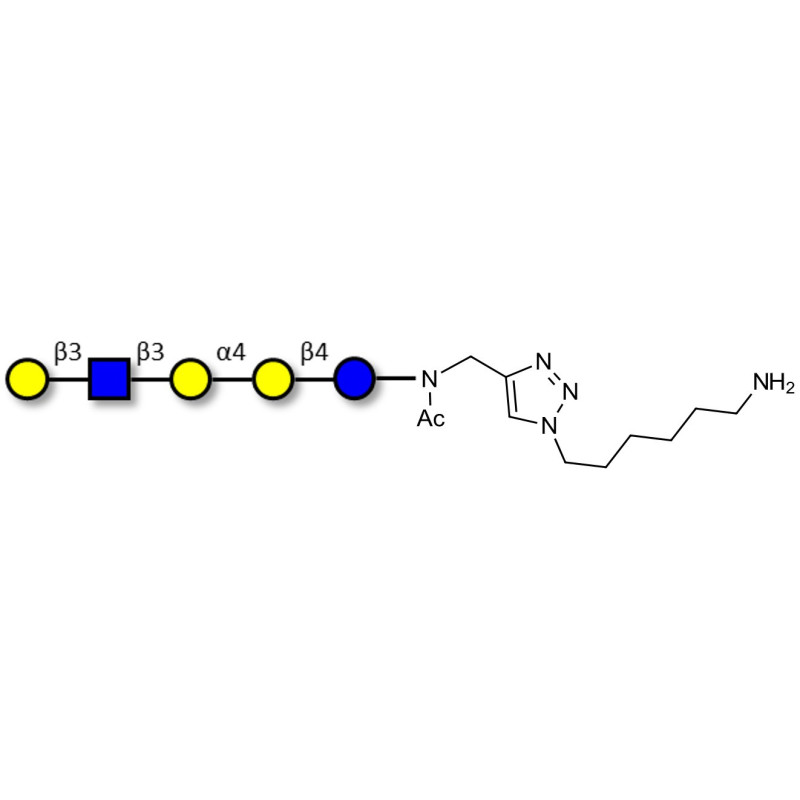 Glycan structure: Galβ1-3GlcNAcβ1-3Galα1-4Galβ1-4Glc-NAc-CH2-(1.4-Tz)-(CH2)6-NH2