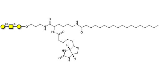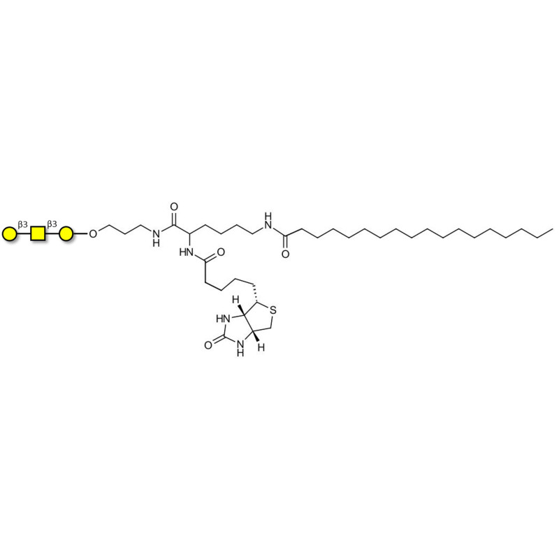 Glycan structure: Galβ1-3GalNAcβ1-3Gal-O-(CH2)3-NHCO-CH(NHCO-Biotin)-(CH2)4-NHCO-(CH2)16-CH3