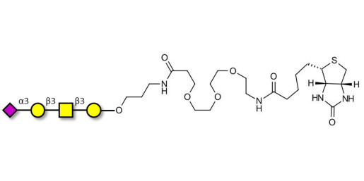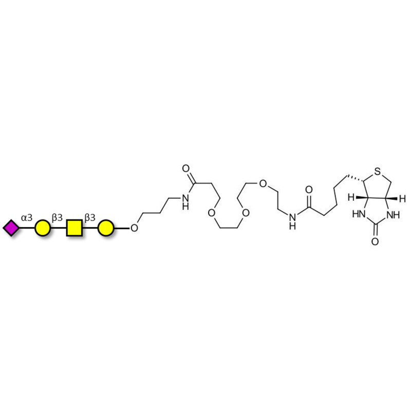 Glycan structure: Neu5Acα2-3Galβ1-3GalNAcβ1-3Gal-O-(CH2)3-NHCO-(CH2)2-EG3-NH-Biotin