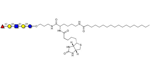 Glycan structure: Fucα1-2Galβ1-4GlcNAcβ1-3Galβ1-4Glc-O-(CH2)3-NHCO-CH(NHCO-Biotin)-(CH2)4-NHCO-(CH2)16-CH3