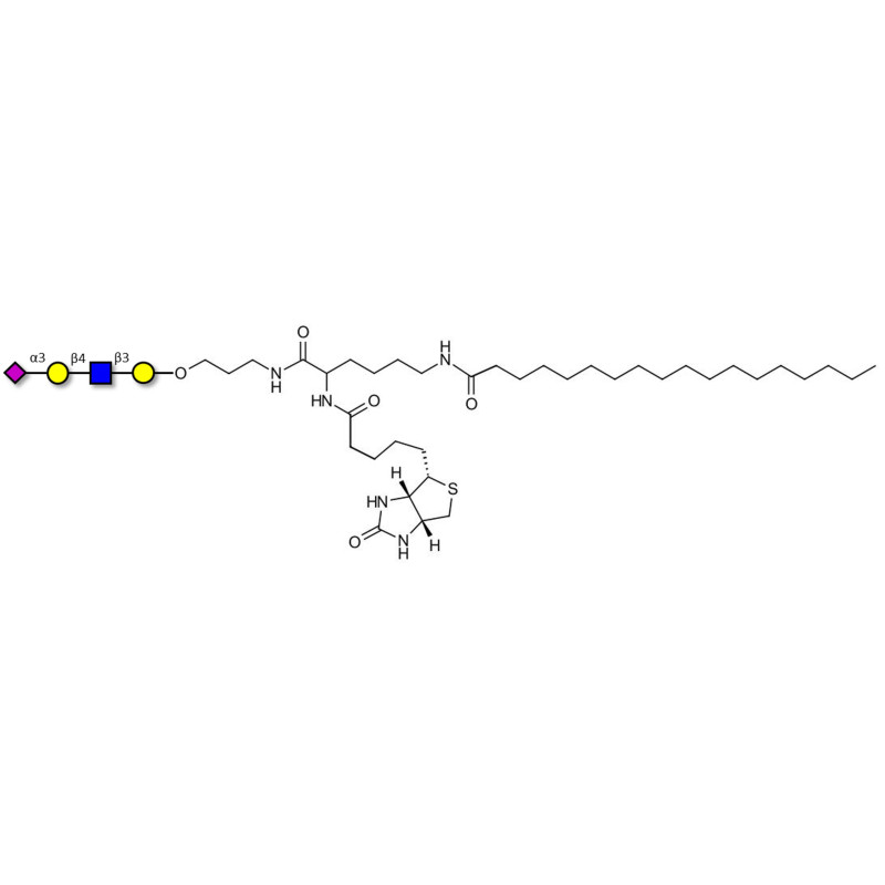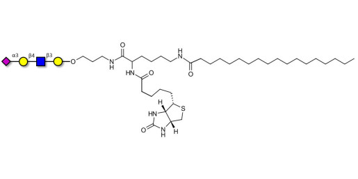 Glycan structure: Neu5Acα2-3Galβ1-4GlcNAcβ1-3Gal-O-(CH2)3-NHCO-CH(NHCO-Biotin)-(CH2)4-NHCO-(CH2)16-CH3