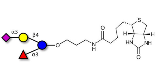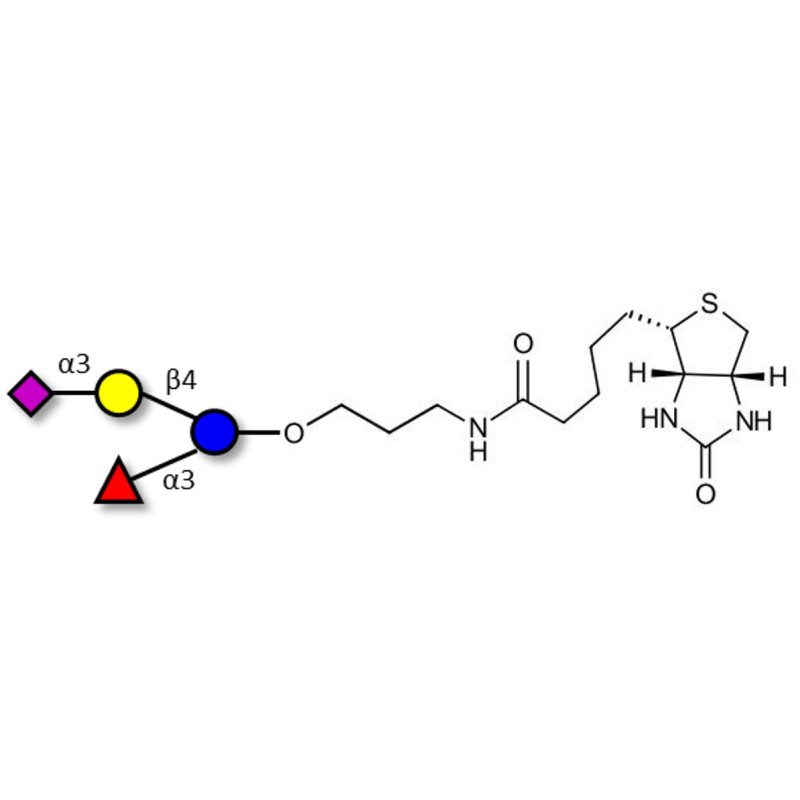 Glycan structure: Neu5Acα2-3Galβ1-4(Fucα1-3)Glc-O-(CH2)3-NH-Biotin