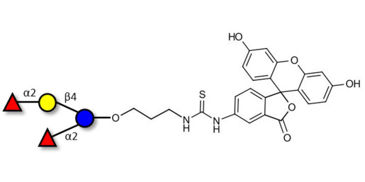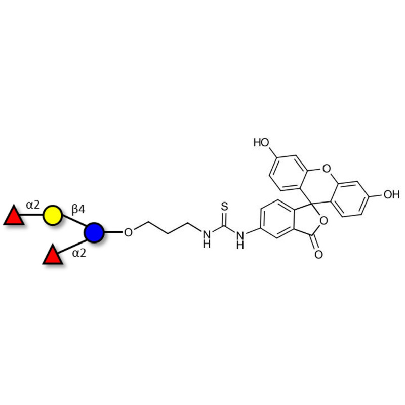 Glycan structure: Fucα1-2Galβ1-4(Fucα1-2)Glc-O-(CH2)3-NH-CS-NH-Fluorescein