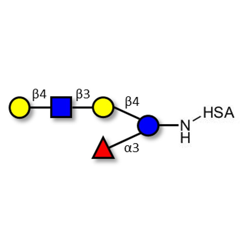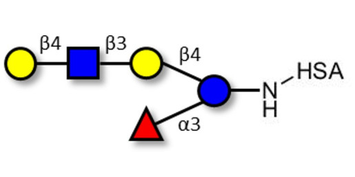 Glycan structure: Galβ1-4GlcNAcβ1-3Galβ1-4(Fucα1-3)Glc-HSA