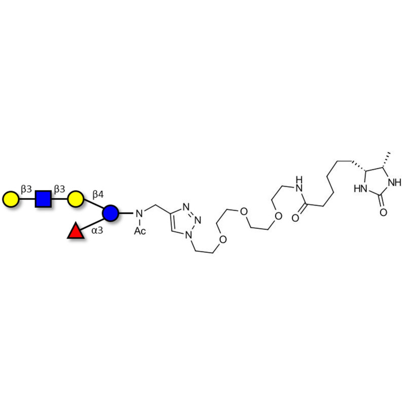 Glycan structure: Galβ1-3GlcNAcβ1-3Galβ1-4(Fucα1-3)Glc-NAc-CH2-(1.4-Tz)-(CH2)2-EG3-NH-Desthiobiotin