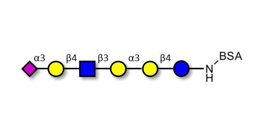 Glycan structure: Neu5Acα2-3Galβ1-4GlcNAcβ1-3Galα1-3Galβ1-4Glc-BSA