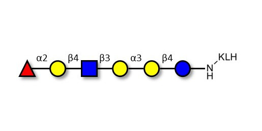 Glycan structure: Fucα1-2Galβ1-4GlcNAcβ1-3Galα1-3Galβ1-4Glc-KLH