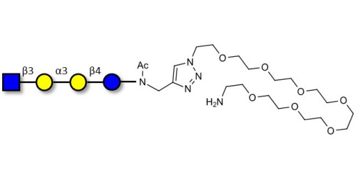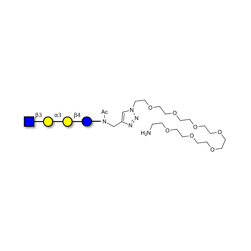 Glycan structure: GlcNAcβ1-3Galα1-3Galβ1-4Glc -NAc-CH2-(1.4-Tz)-(CH2)2-EG7-NH2