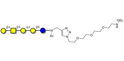 Glycan structure: Galβ1-3GalNAcβ1-3Galα1-3Galβ1-4Glc-NAc-CH2-(1.4-Tz)-(CH2)2-EG3-NH-Gel