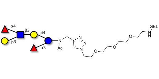 Glycan structure: Galβ1-3(Fucα1-4)GlcNAcβ1-3Galβ1-4(Fucα1-3)Glc-NAc-CH2-(1.4-Tz)-(CH2)2-EG3-NH-Gel