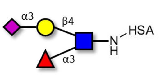 IMPORTANT INFORMATION: The oligosaccharides are directly grafted onto the lysine residues of the protein via reductive amination (reduction of the oligosaccharides). If you are looking for a product that preserves the native structure of the glycan, we also offer a range of oligosaccharides grafted onto proteins via a linker. For more information or to request a quotation, send us a message HERE
