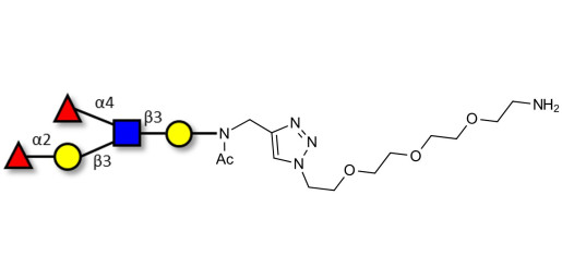 Glycan structure: Fucα1-2Galβ1-3(Fucα1-4)GlcNAcβ1-3Gal-NAc-CH2-(1.4-Tz)-(CH2)2-EG3-NH2
