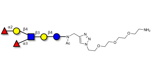 Glycan structure: Fuc-a1,2-Gal-b1,4-(Fuc-a1,3-)GlcNAc-b1,3-Gal-b1,4-Glc-NAc-CH2-(1.4-Tz)-(CH2)2-EG3-NH2