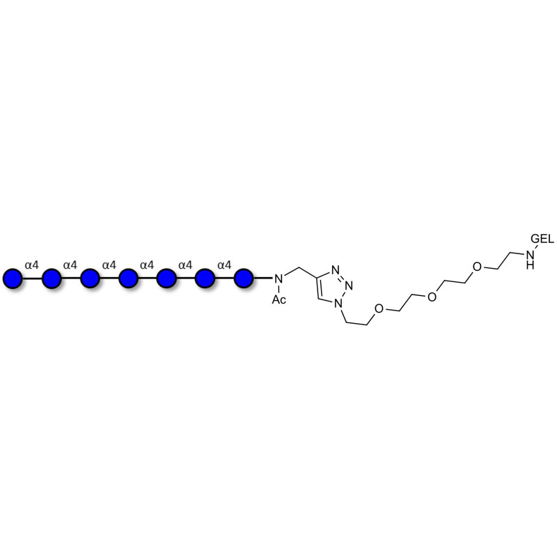 Glycan structure: Glcα1-4[Glcα1-4]5Glc-NAc-CH2-(1.4-Tz)-(CH2)2-EG3-NH-Gel