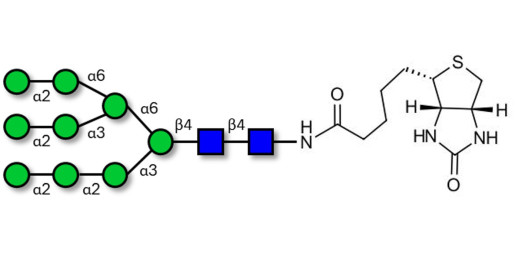 Our N-glycans are produced by chemical synthesis, ensuring high purity and precise structural characterization. They are available with a wide range of functionalizations (Biotin, Fluorescein, ...) and can be supplied in large quantities on request. For more information, send us a message HERE