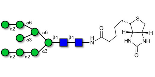 Our N-glycans are produced by chemical synthesis, ensuring high purity and precise structural characterization. They are available with a wide range of functionalizations (Biotin, Fluorescein, ...) and can be supplied in large quantities on request. For more information, send us a message HERE