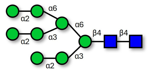 Synonyms:M8D2D3 ; M8 ; Oligomannose 8 glycan ; Man-8 N-linked oligosaccharide ; Man8(GlcNAc)2