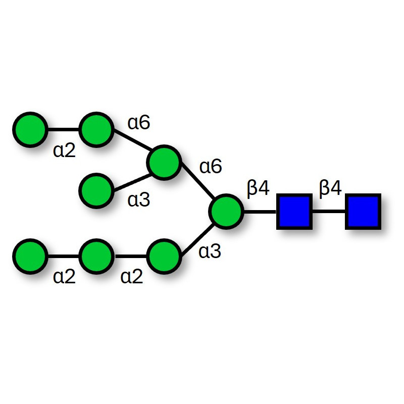 Our N-glycans are produced by chemical synthesis, ensuring high purity and precise structural characterization. They are available with a wide range of functionalizations (Biotin, Fluorescein, ...) and can be supplied in large quantities on request. For more information, send us a message HERE