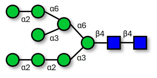 Glycan structure: Manα1-2Manα1-2-Manα1-3[Manα1-2Manα1-6(Manα1-3)Manα1-6]Manβ1-4GlcNacβ1-4GlcNac